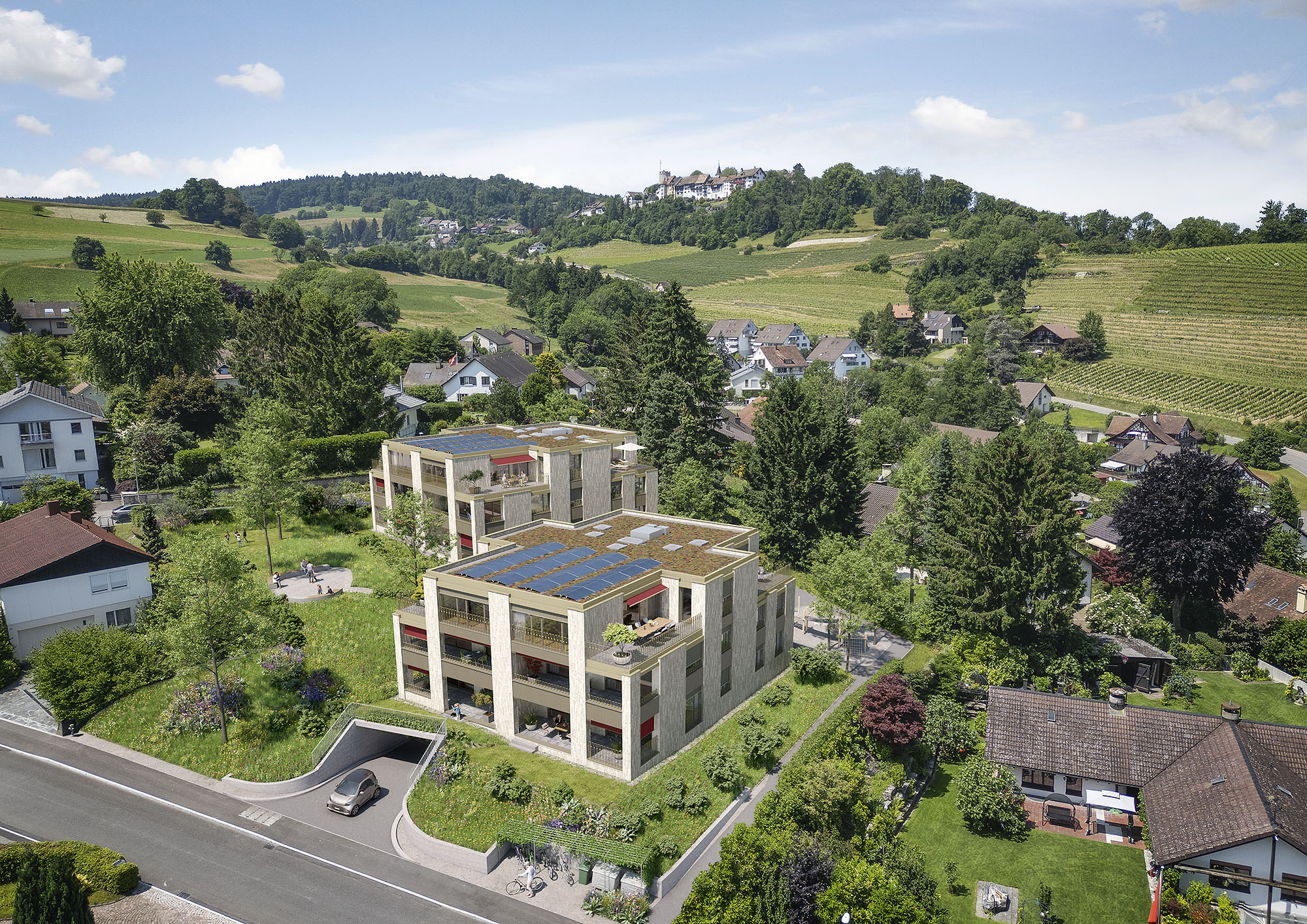 Inmitten eines ruhigen Einfamilienquartiers entsteht das Wohnensemble «Am Regensberg» mit insgesamt 12 Eigentumswohnungen an bester Wohnlage – eine Oase des hochwertigen Wohnens. Die architektonische Gestaltung der Bauten vereint zeitgemässe Eleganz mit einem harmonischen Einklang in die umgebende, grüne Natur.