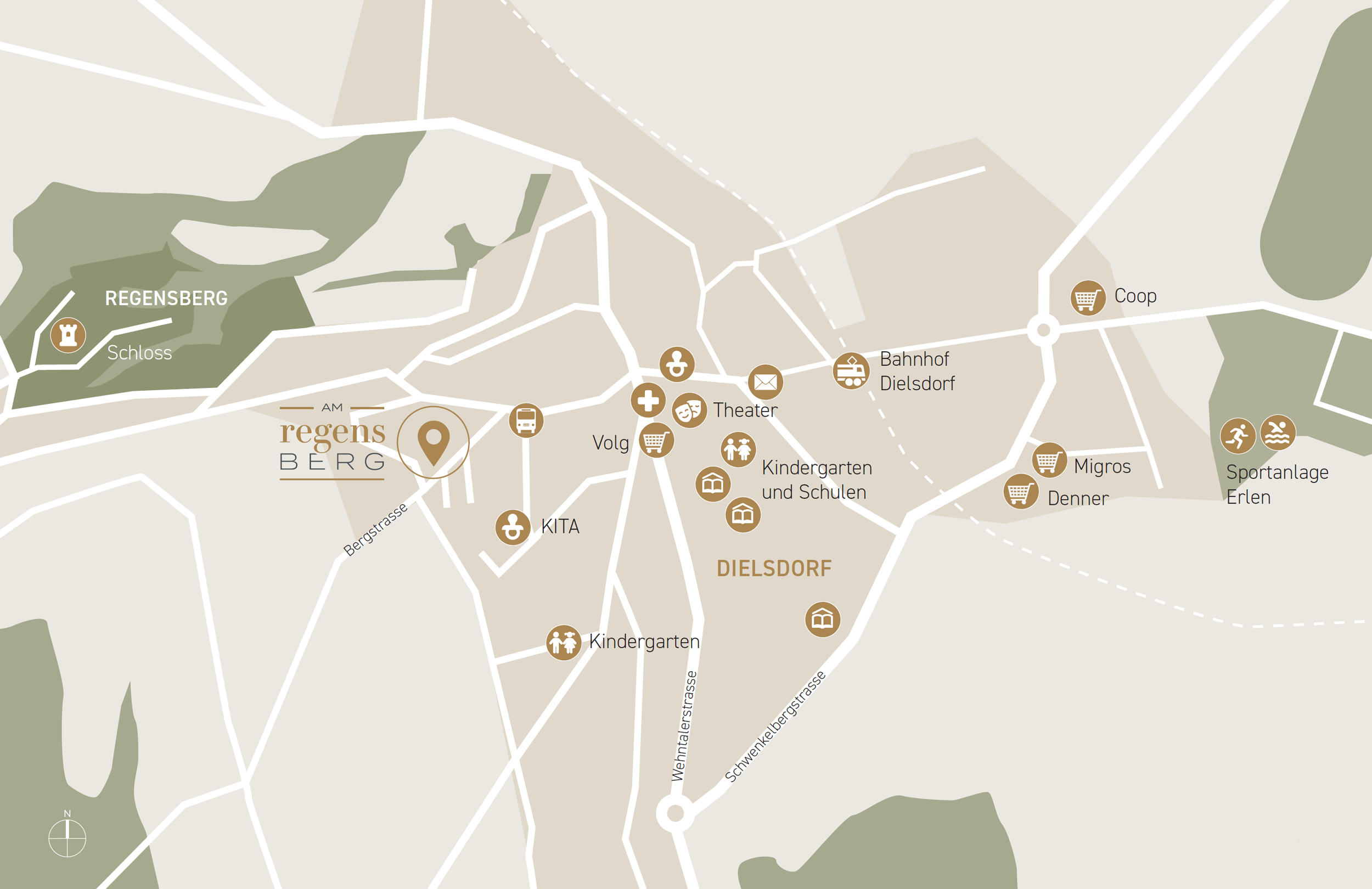 Die nächste Bushaltestelle ist in nur wenigen Gehminuten erreichbar und garantiert eine schnelle Anbindung an den Bahnhof Dielsdorf sowie nach Zürich und die umliegende Region. Mit dem Auto erreichen Sie die Hauptverkehrsachsen unkompliziert und schnell.